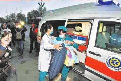 在生活中,孩子们经常把异物卡在进气道里。作为父母,当这些紧急情况出现在你面前时,你应该做些什么才是正确有效的?首先要知道一件事:抢救的关键在于前10分钟,以及这10分钟内的一些急救技术,你可以掌握并应用到实践中。道县长途救护车转院告诉您父母如何急救异物卡喉?1.将孩子侧卧在一侧前臂上,同侧手固定下颌角,使头部稍微向后倾斜,打开气道。2.用另一只手固定孩子的头部和颈部,头部压低,头部低于身体,使用重
